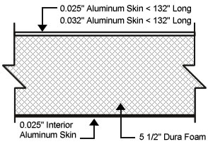 - Sandwich Construction of 5 1/2”Thick 1 1/2lb. Density Durafoam, Bonded to White Stucco Embossed Aluminum Skin.