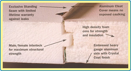 The interlocking roof system provides superior strength and rigidity, and its exclusive standing seam with aluminum cleat cover means no exposed calking and no leaks. We guarantee it!